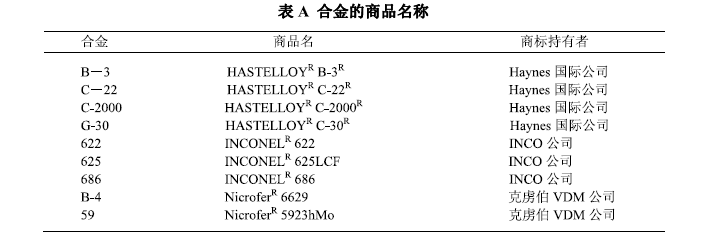 这三家世界领先的公司还在继续开发化学工业感兴趣的新型镍合金和改进型合金。本文提到的它们的专利合金列于表A。